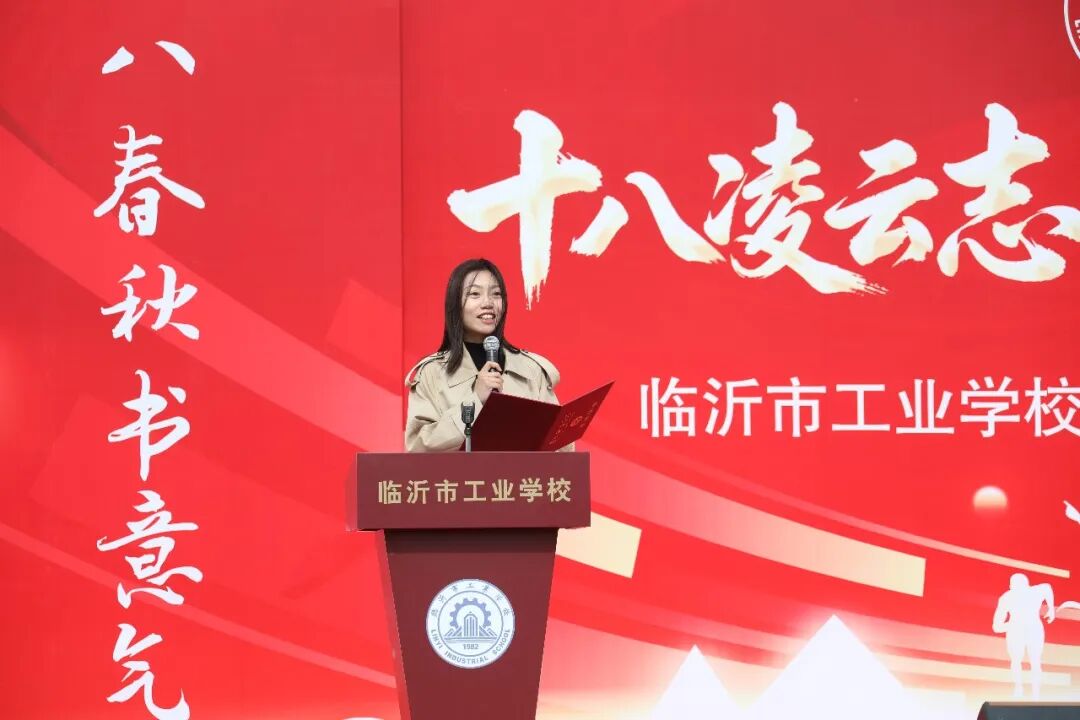 上午9点,伴随着雄壮激昂的国歌声,成人礼仪式正式拉开帷幕。临沂市工业学校党委副书记、校长李景涛在致辞中,引用《劝学》名句“骐骥一跃,不能十步;驽马十驾,功在不舍” 寄语全体学子。他勉励大家在成年新征程上,做志存高远、以技立身的追光者,做不忘初心、脚踏实地的实干家,做肩扛责任、心怀温暖的新青年。同时鼓励同学们不惧风浪、勇毅前行,以成年人的担当与责任,奋力开创属于自己的美好未来。