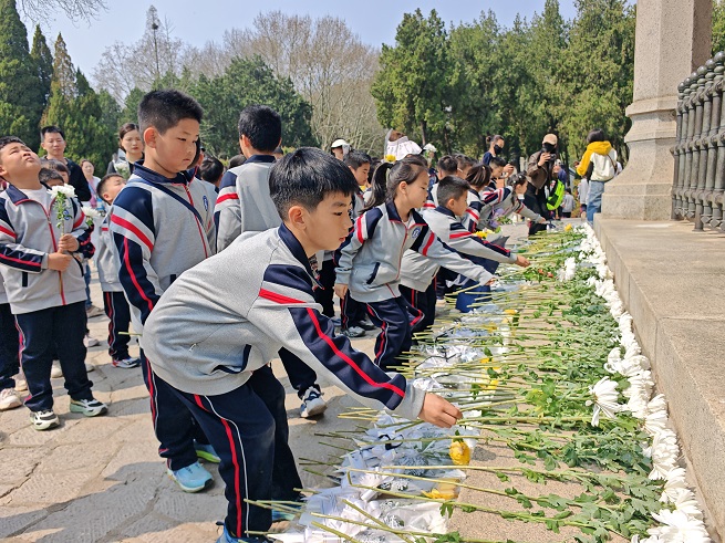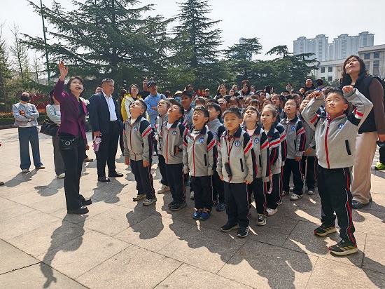 活动在雄壮嘹亮的国歌声中拉开序幕,孩子们齐唱国歌,向革命英烈敬献鲜花。学生代表呼吁大家永远铭记峥嵘岁月,不忘革命先烈的付出,在传承中成长,在希望中前行。全体师生向革命烈士纪念塔鞠躬,深切表达对烈士无比崇敬和深切缅怀之情。